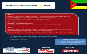 O seminário «Empreendedorismo Hoje» vai-se realizar em Maputo no dia 31 de Julho, no Instituto Superior de Comunicação e Imagem de Moçambique (ISCIM), mediante a organização da empresa de consultoria de Marketing e Pesquisa de Mercado PCBCX e com o apoio da revista CAPITAL, publicação devotada à informação sobre o mundo da economia e dos negócios.
